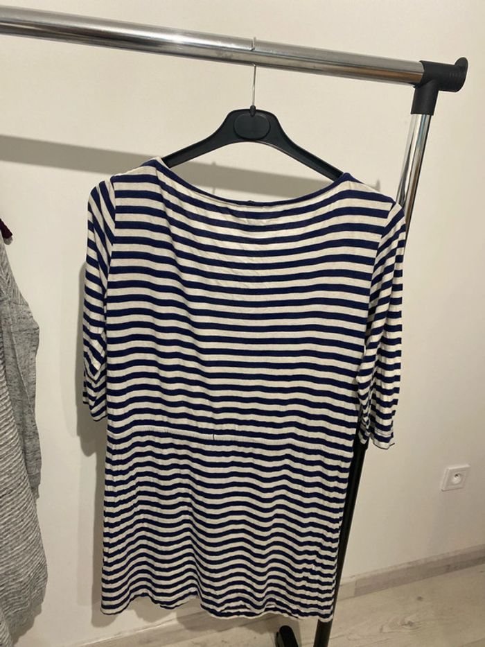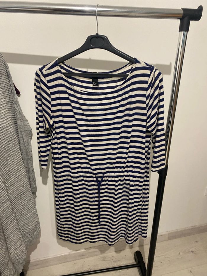 Robe manches trois-quarts, rayures Marine Taille M Largeur au niveau des épaules, environ 39 cm. Longueur environ 85 cm. #femmexav