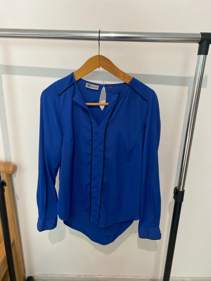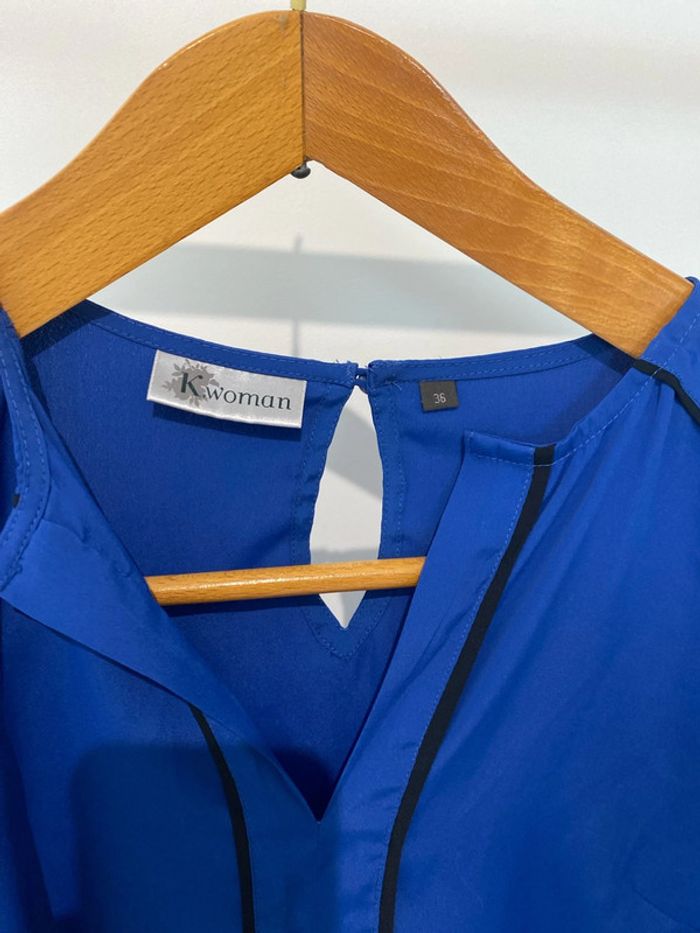 Blouse, Kiabi, couleur bleu roi taille 36 Décolleté Col v Largeur au niveau des épaules, environ 37 cm, longueur de la blouse au dos, 76 cm, longueur de la blouse devant environ 60 cm #femmexav