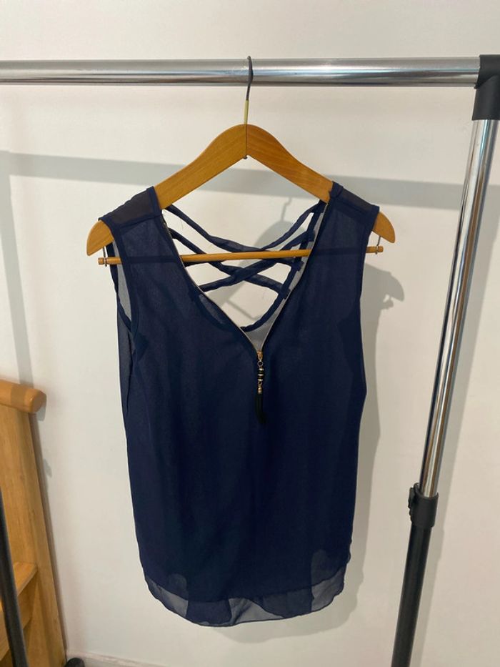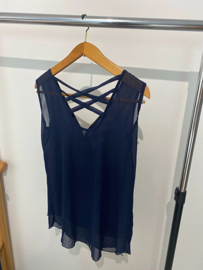 Haut tunique Débardeur long Matière fluide et un peu transparente Taille M. Largeur sous aisselle environ 45 cm. Longueur de tunique, 72 cm largeur au niveau des épaules, 39 cm environ. #femmexav