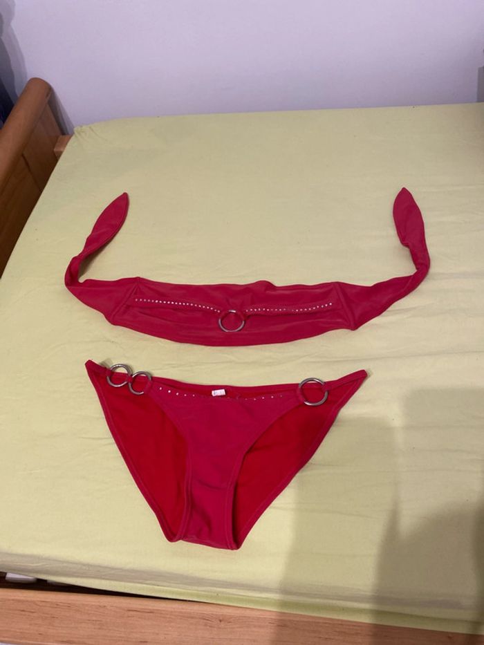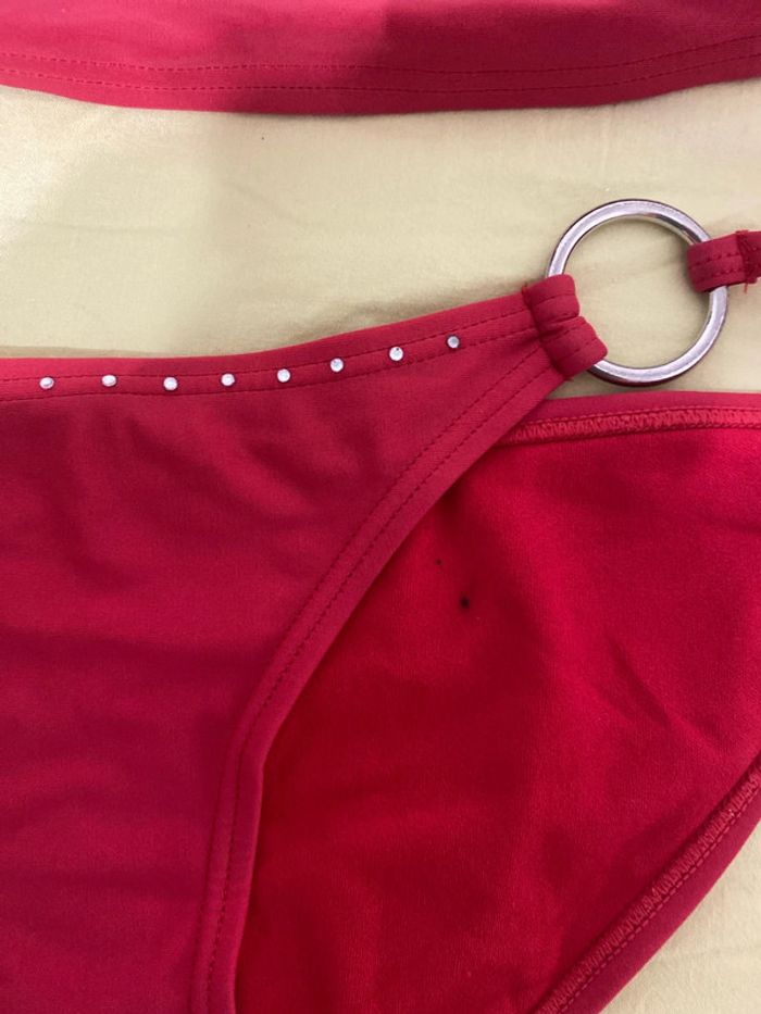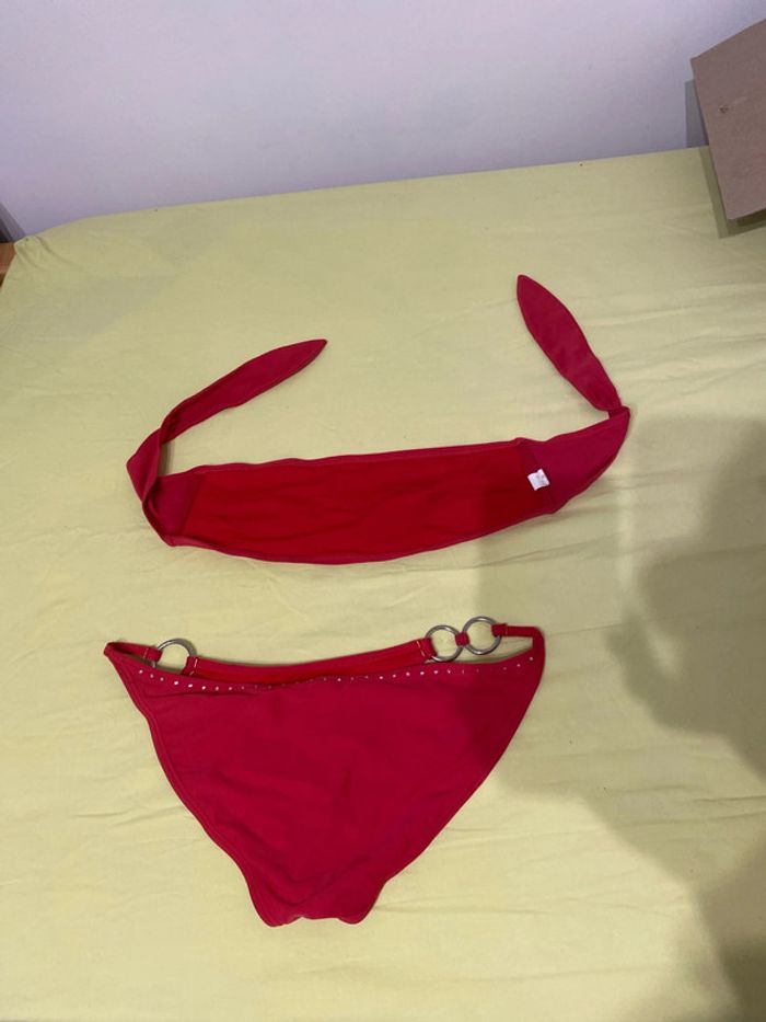 Maillot de bain, deux pièces rouges, taille M quelques petites taches noires, certainement rattrapables en machine Haut en bandeau #femmexav