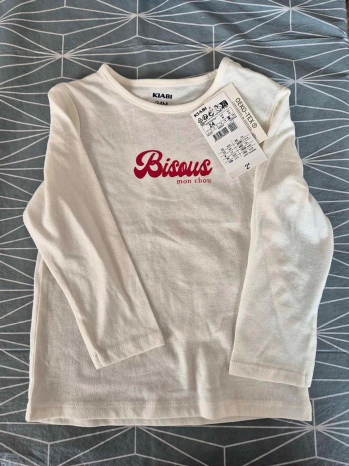 T-shirt manches longues taille 24 mois Inscription bisous mon chou Neuf avec étiquette