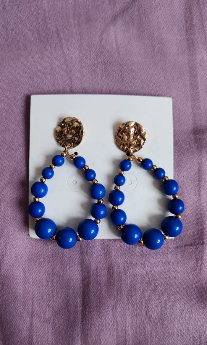Jolie paire de boucles d'oreilles bleues et dorées Neuves