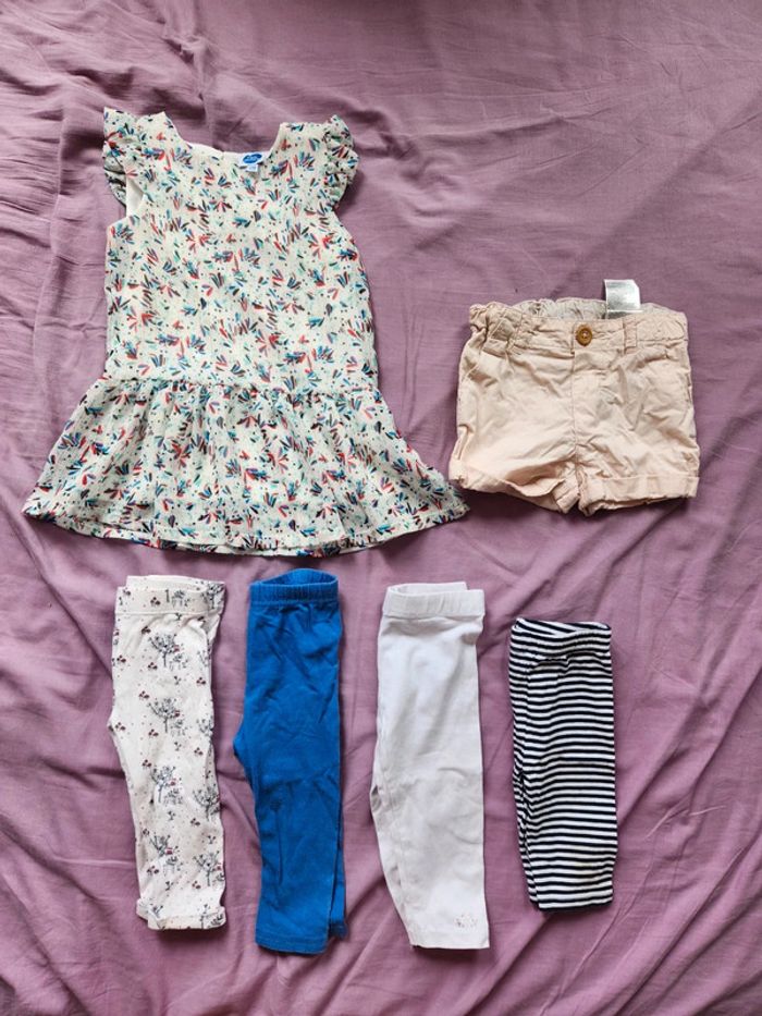 Lot vêtements bébé fille taille 12 mois Comprend une robe, un short et 4 leggings Très bon état Diverses marques