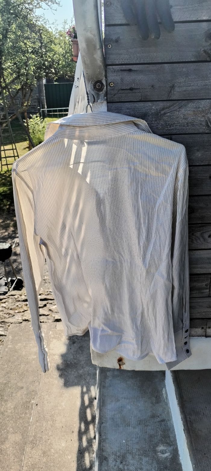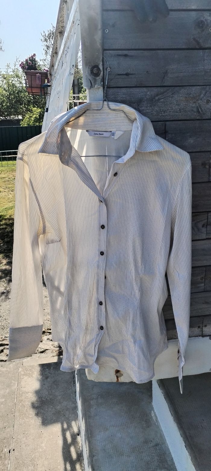 Chemisier blanc à rayures noires à manches longues pour femme. Marque Zara. Taille M. Comme neuf. Que mondial relais ou Relais Colis.