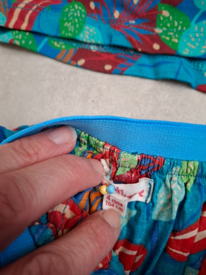 Très bon état avec un petit lien en perles sur l'étiquette pour reconnaître facilement ses vêtements cf photo. N'hésitez pas à jeter un œil dans mon dressing Haut en 3 ans et bas en 4 ans