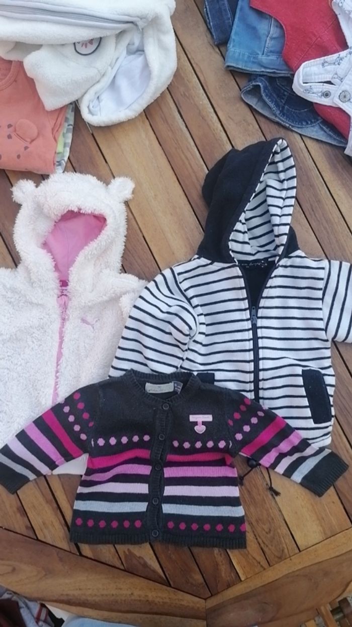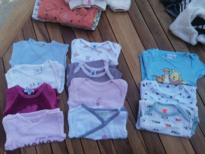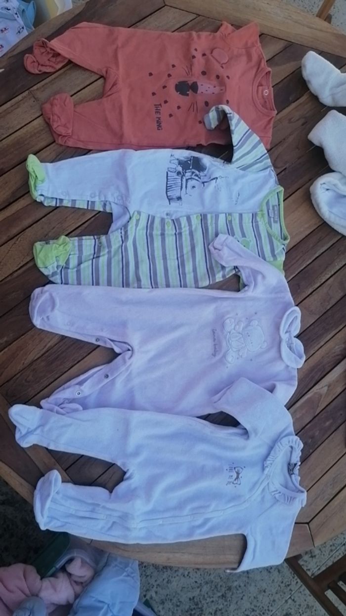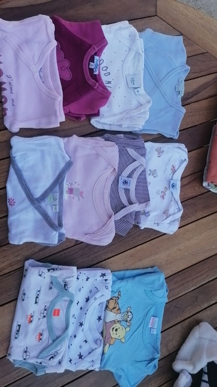 Lot de 31 pièces 8 bodies manches longues 3 bodies manches courtes 2 salopettes short 3 gilets 2 pyjamas velours 2 pyjamas été 6 shorts 3 robes 2 vestes 1 combinaison
