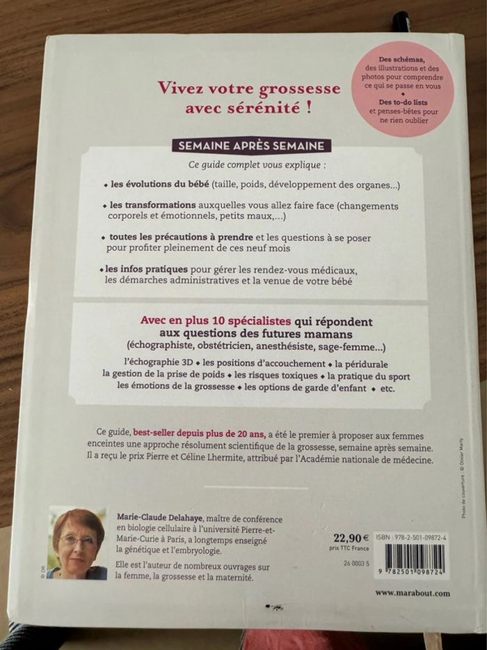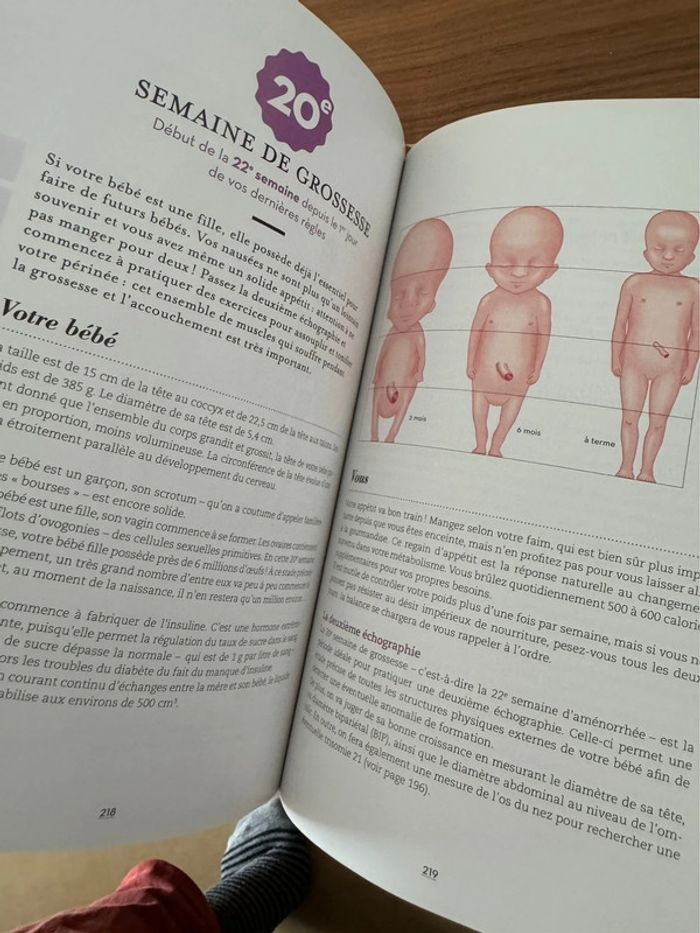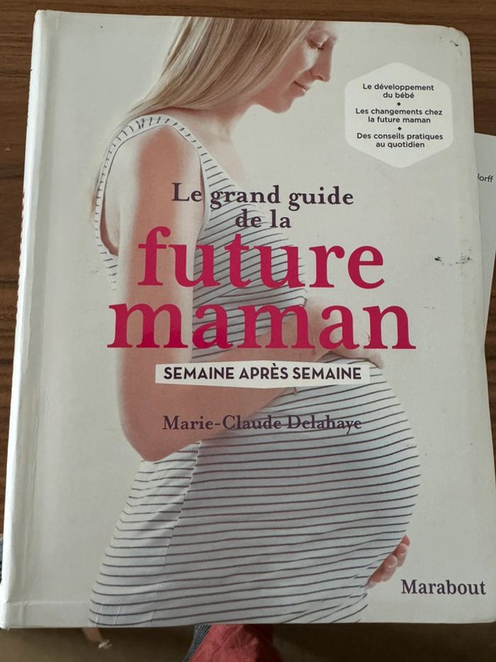 Livre Le grand guide de la future maman M’a beaucoup servi pour ma première grossesse, hyper intéressant quand on veut suivre chaque semaine les évolutions de son corps et de bébé, ce qu’il faut faire niveau administratif etc. Quelques traces sur la couverture