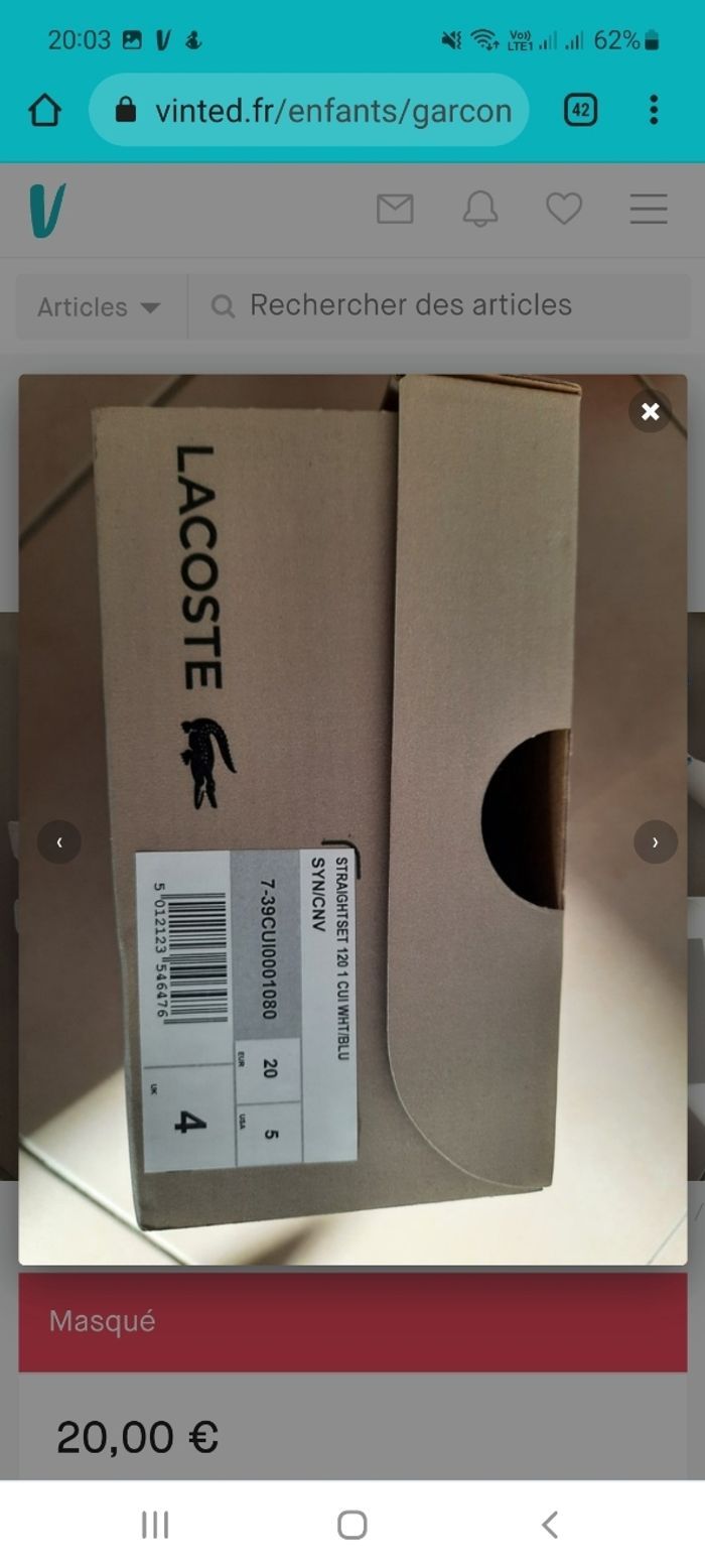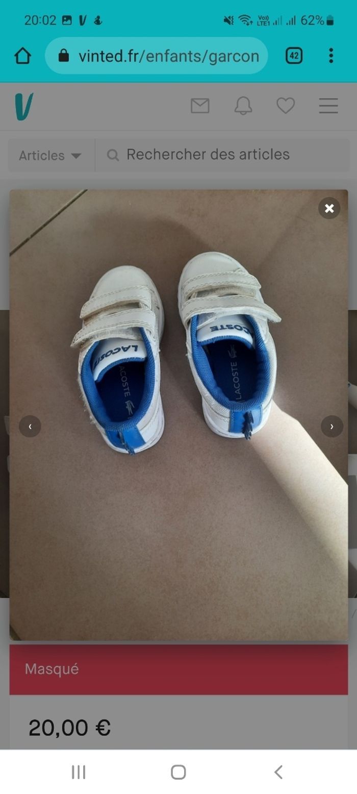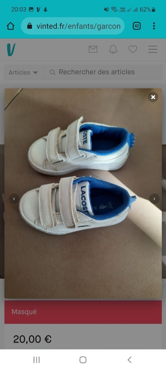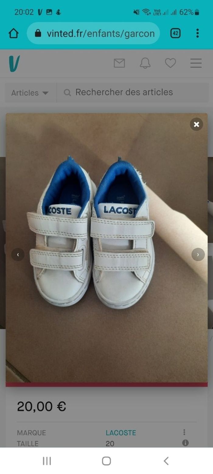 Baskets Lacoste Blanche et bleu Taille 20 Très bon état