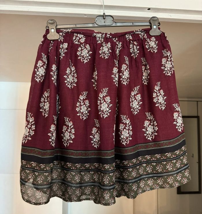 Jupe bordeaux Doublée, élastique + ceinture ruban Portée 1/2 fois Promod - Taille 38