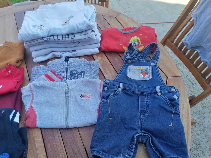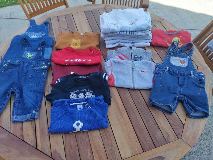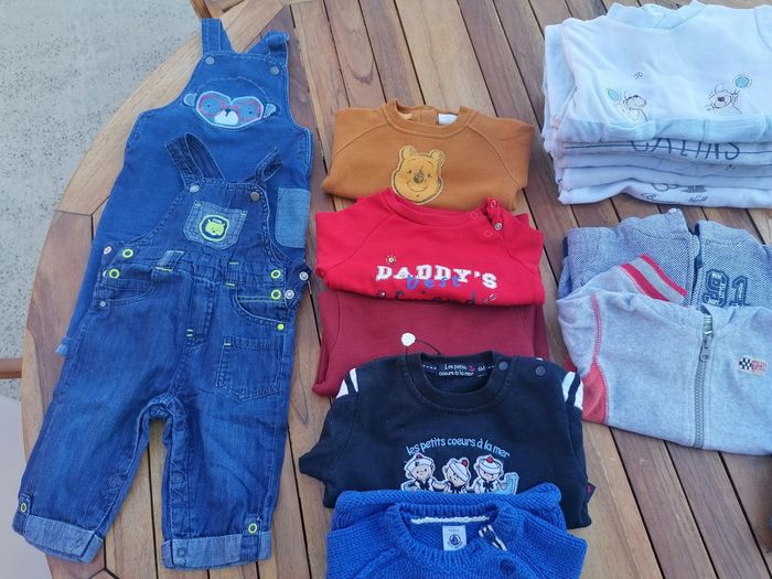 Lot de 17 pièces 2 salopettes 1 salopette short 5 pulls 2 gilets 6 pyjamas velours 1 pyjama été