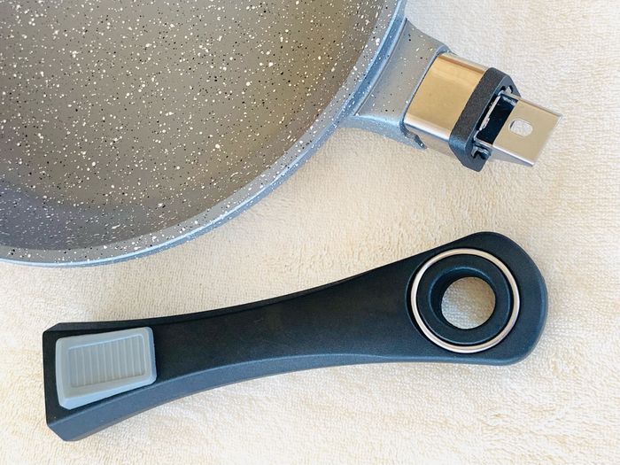 Poêle grise Nice Cooker (Roc Tec), diamètre 24cm En particule de pierre, fonte d’aluminium, manche noir isolant amovible. Tous feux dont induction Neuf, sans utilisation. *Livré avec le manche démonté ⛔️ Prix FIXES, NON négociables 🚨  👏🏻 Réductions sur les lots 👍🏻 #poele #mancheamobible #sarten #nicecooker #roctec #cc_divers