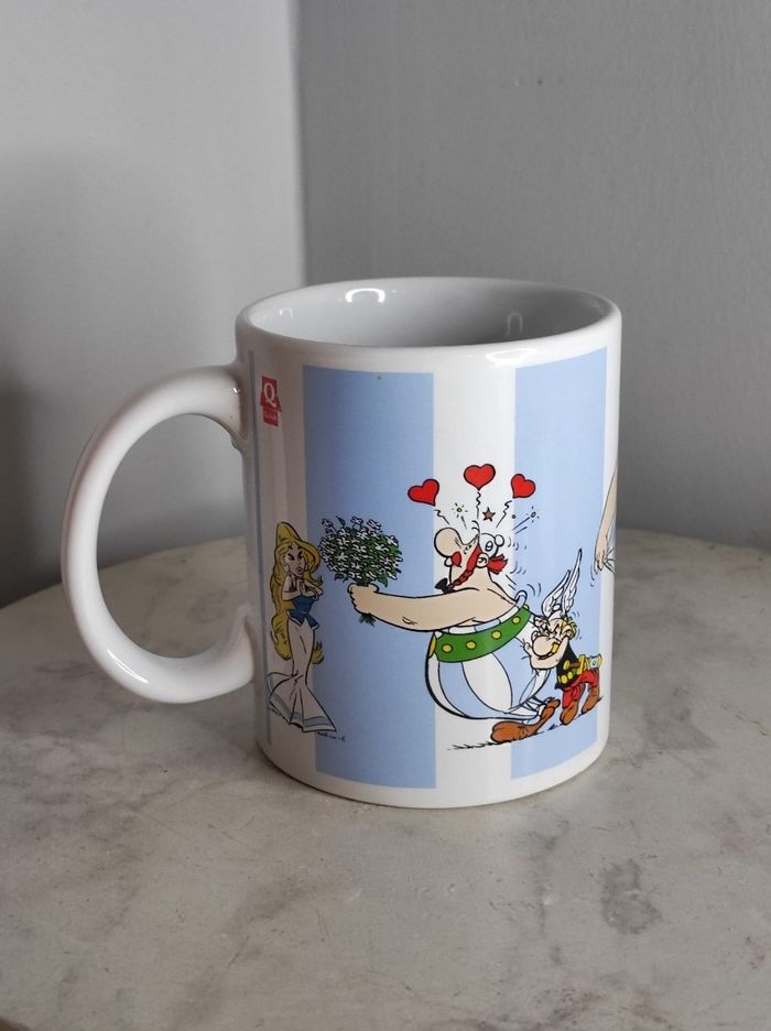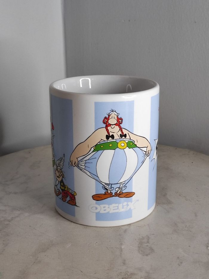 Tasse personnage Obélix de Astérix et Obélix. En parfait état. Dimensions H 9,4 cm x D 7,8 cm