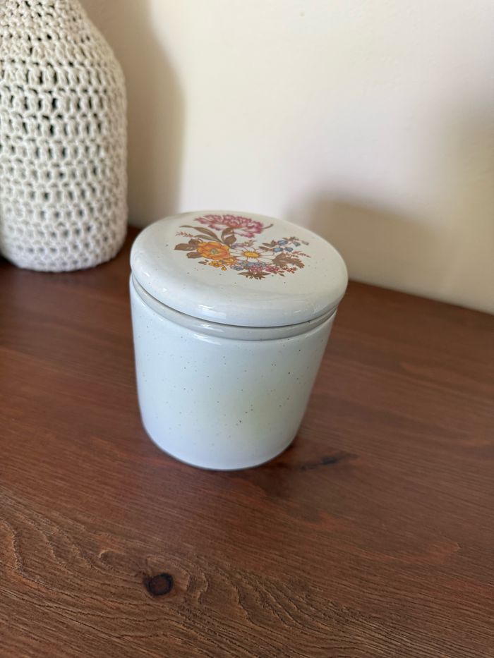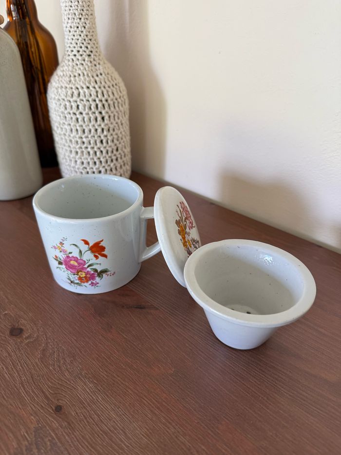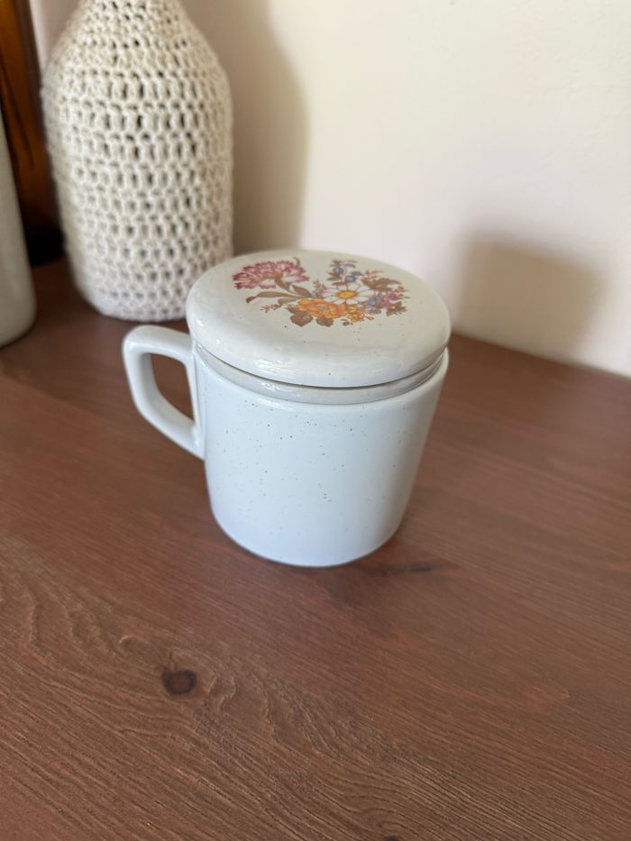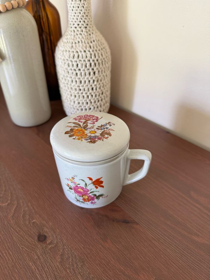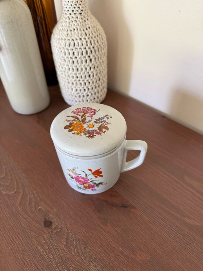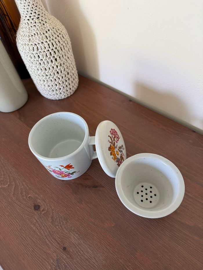 Tisanière en grès mouchetés avec motifs fleurs Vintage Hauteur 9 cm Diamètre 9 cm