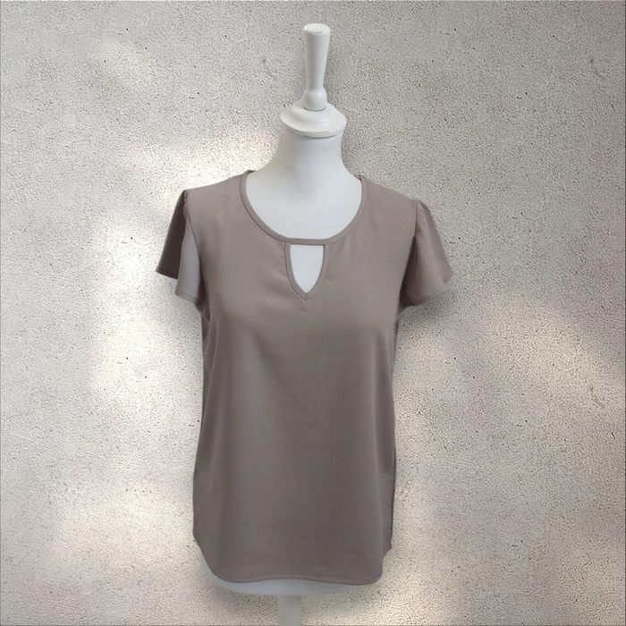 Blouse fluide manches courtes à volants beige taille S - photo numéro 1