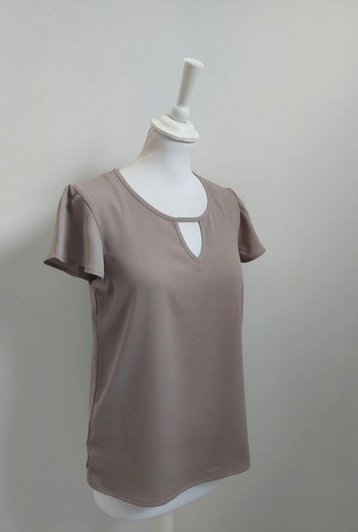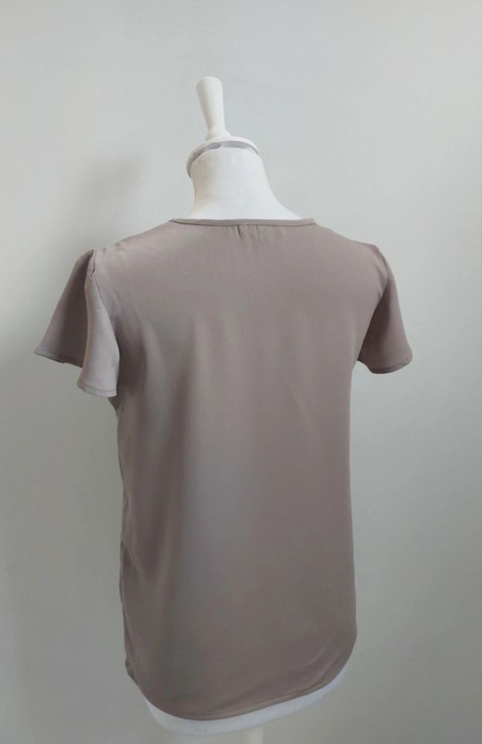 Blouse fluide manches courtes à volants beige taille S - photo numéro 3