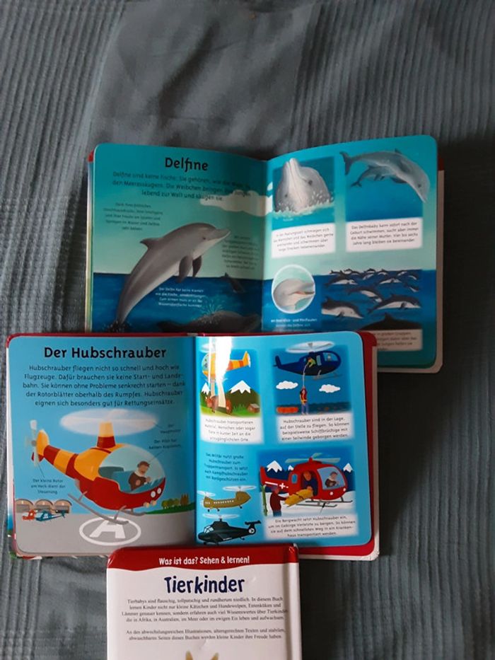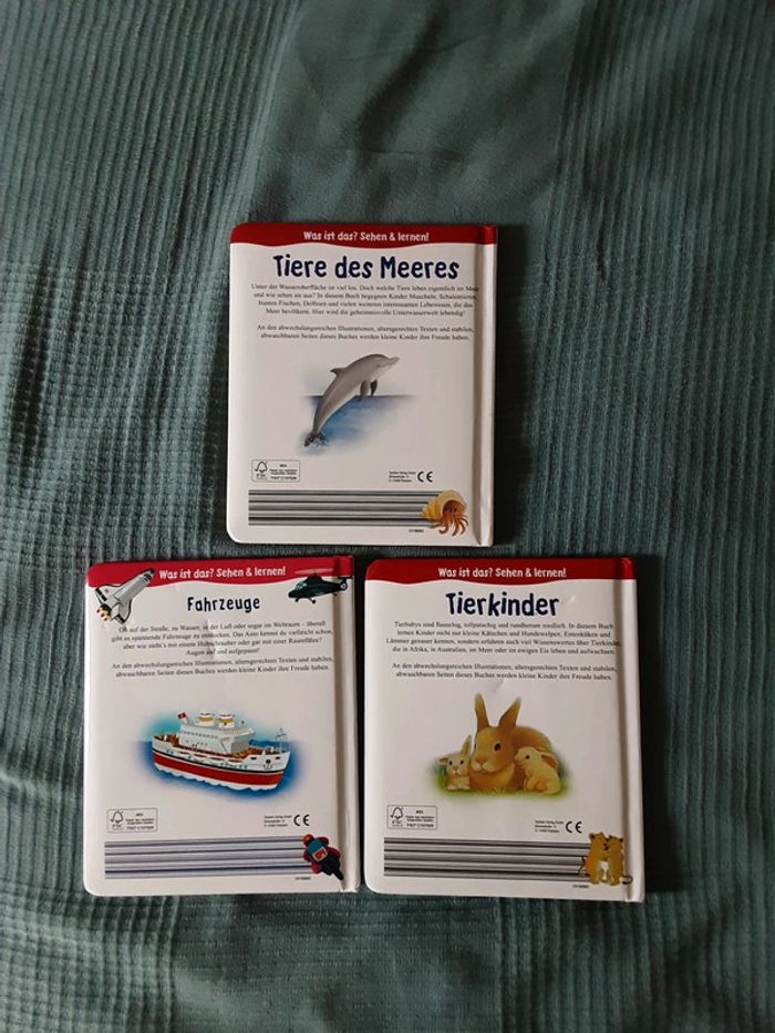 Lot de 3 livres en allemand Was ist das? Tiere des Meeres, Fahrzeuge und Tierkinder