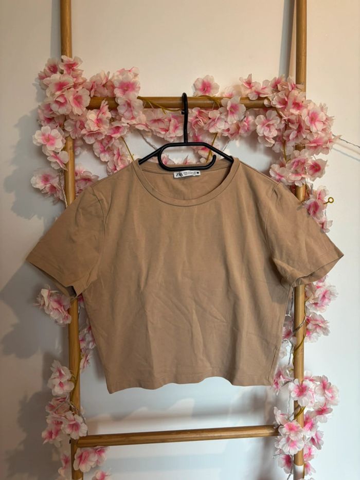 T-shirt court en très bon état peu porté 🌸 Couleur camel, taille M mais peut convenir pour un S également 🍀 #claraa250105_taille_M #claraa250105_taille_S
