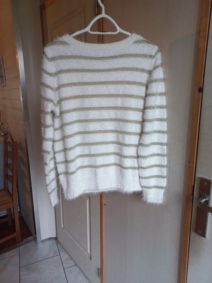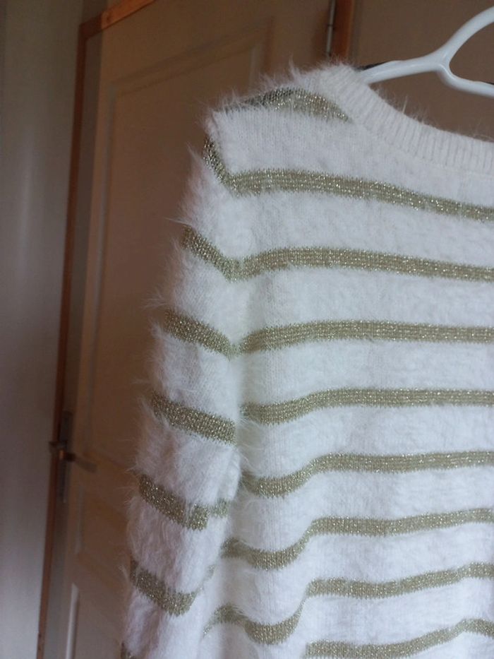 Pull blanc rayer doré Taille 38 La halle