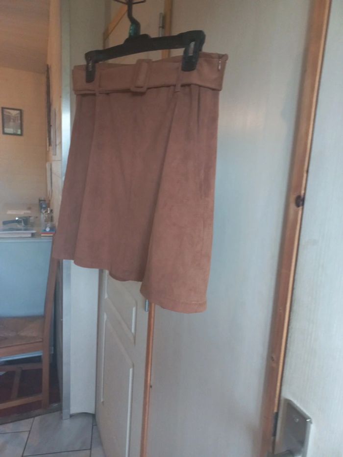 Jupe en Suédine Taille 38 Cache cache Suédine Ceinture Camel