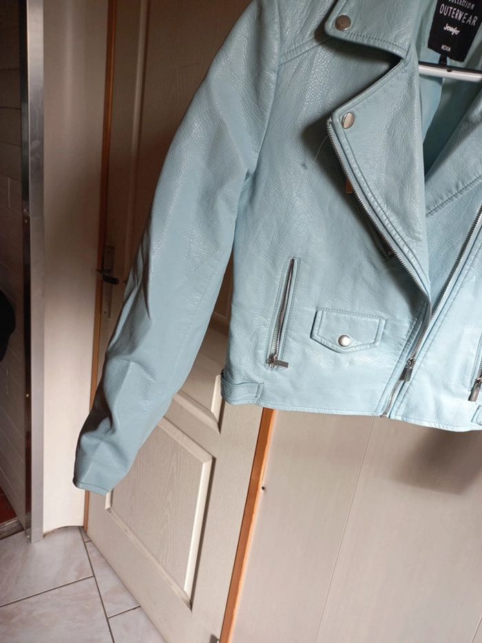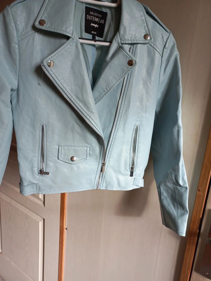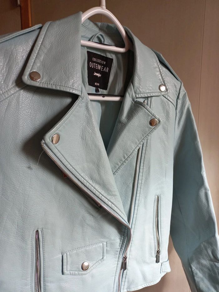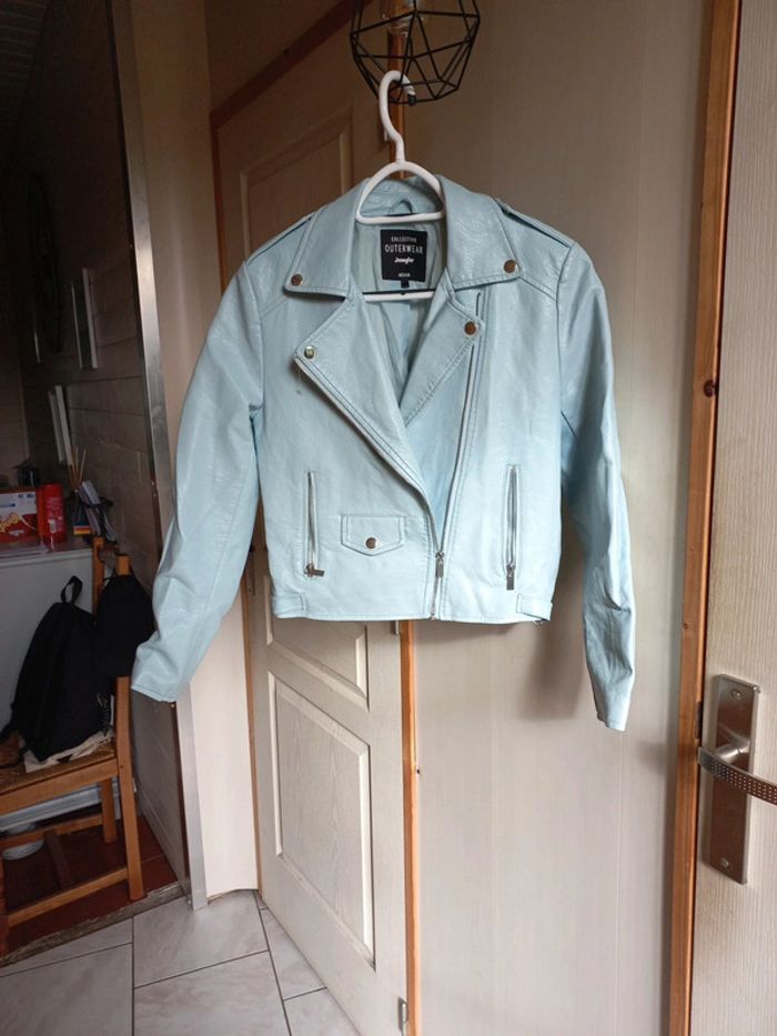 Veste perfecto Simili cuir Taille M Bleue ciel Jennyfer Poches