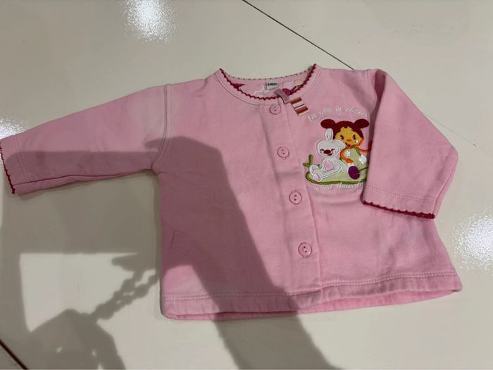 Gilet taille 3mois 🌸 ⚠️étant passer en machine avec de la javel (par erreur ) le gilet est donc décoloré/taché à deux endroit son l’un est visible sur la photo , il seras donc offert avec achat d’un autre article ⚠️ #claraa250105_taille_3moisbb