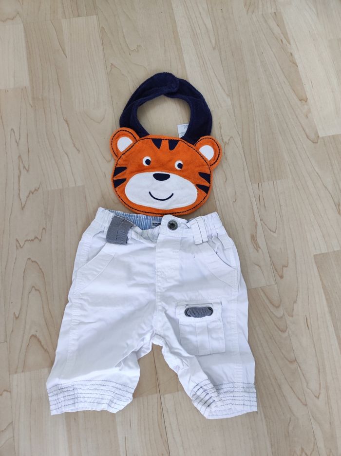 8 t-shirts 2 salopettes 1 veste 1 pyjama 1 pull 1 short Tommy 2 short 1 bodie + t-shirt manche longue 1 t-shirt manche longue Mickey 1 paire de chaussures 1 bavoir tigre 1pantalon