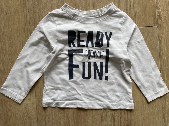 T shirt manches longues Étiqueté 2 ans mais taille petit va pour du 18 mois Marque orchestra En très bon état