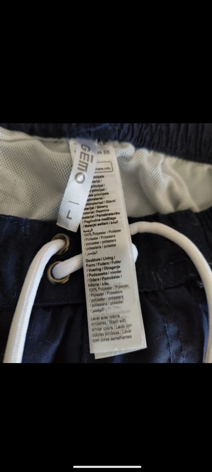 🩳 Short de bain avec 3 poches et cordon de serrage. Poche arrière fermeture tirette. 🩳 Taille L 🩳 Marque : Gémo 🩳 Très bon état