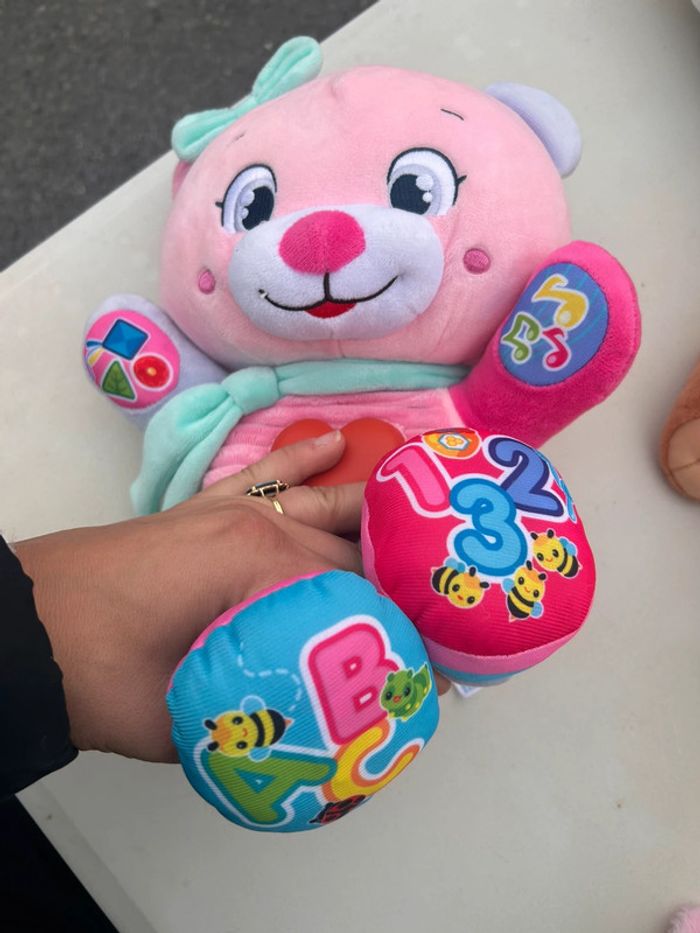 Peluche éducatif ourson rose Fonctionne parfaitement