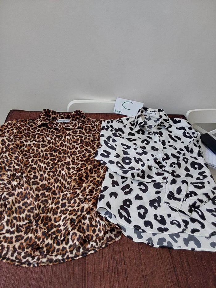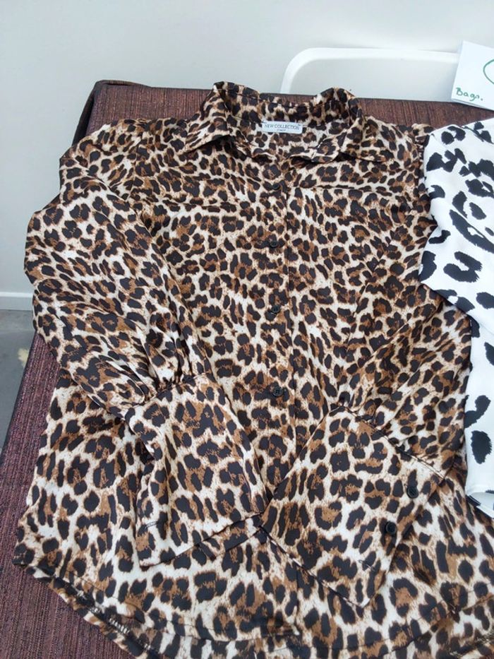 2 chemises touché satiné motifs léopards