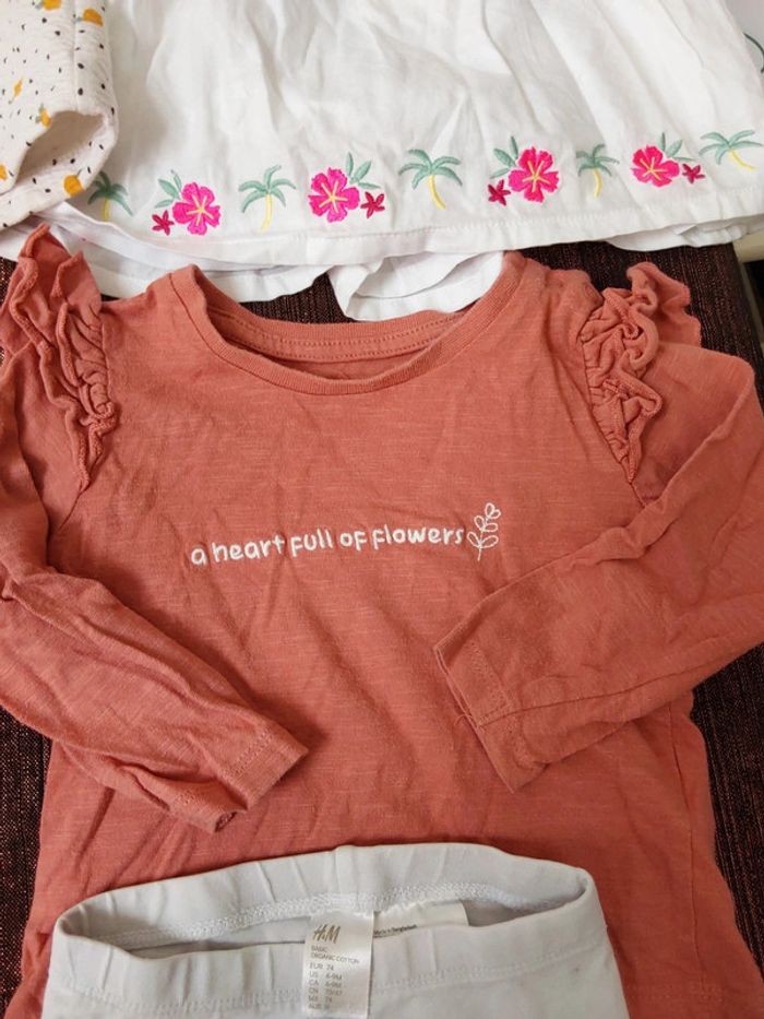 Très joli lot pour fille 6- 9 mois Certaines pièces sont neuves d'autres en très bon état sauf le legging blanc qui est offert