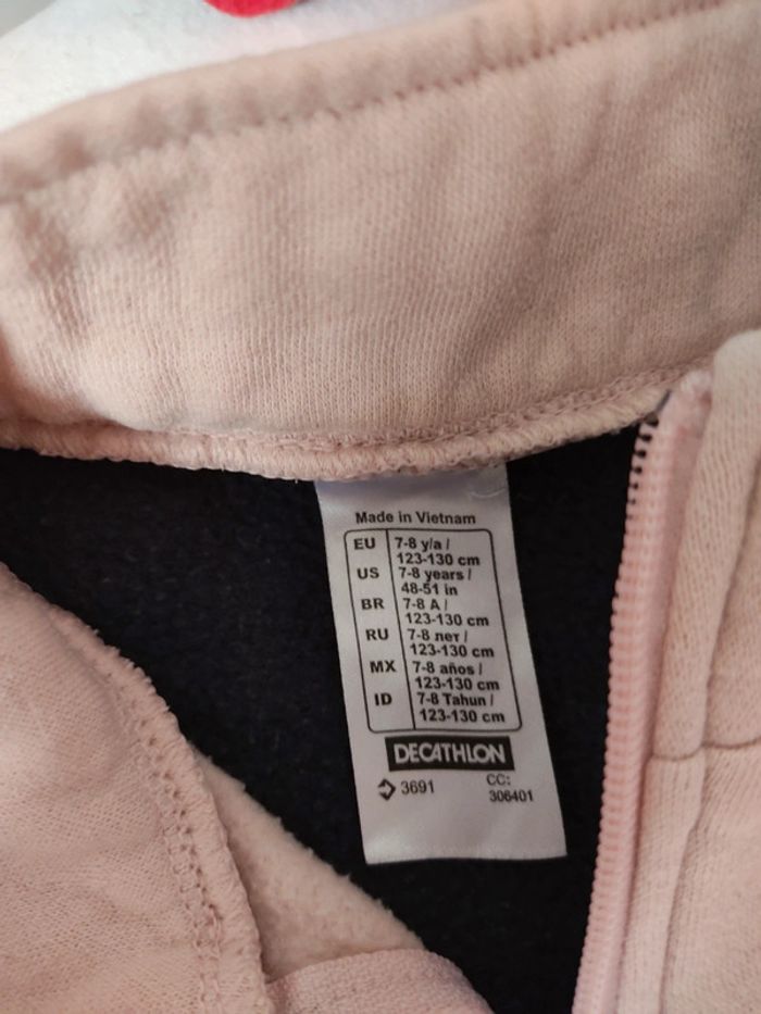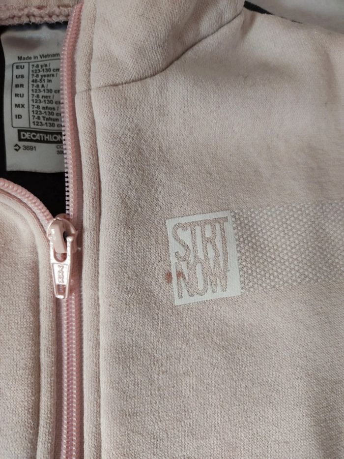 Veste de jogging taille 7-8 ans. A été porté mais reste en bon état. A noter:une tâche est présente sur le devant ( voir dernière photo).