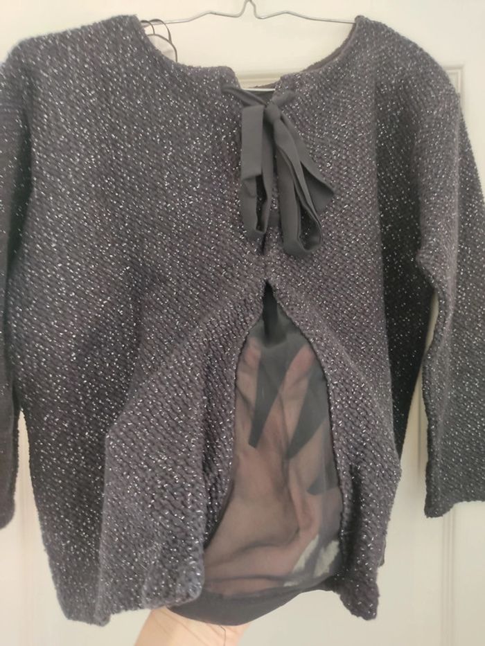 Pull taille L, manches 3/4, court, se noue dans le dos. Porté une fois.