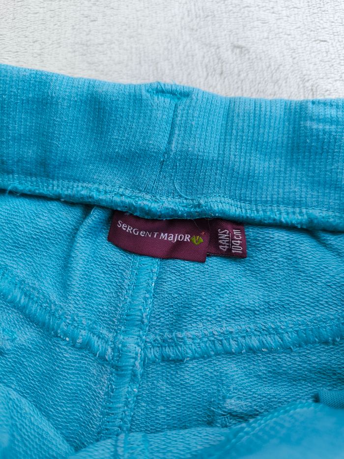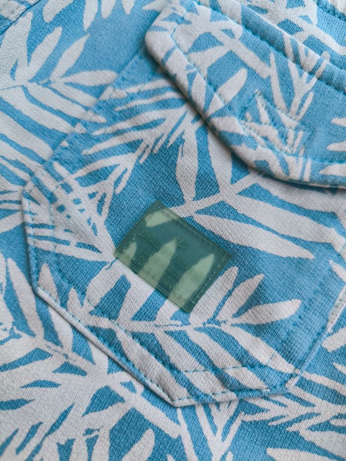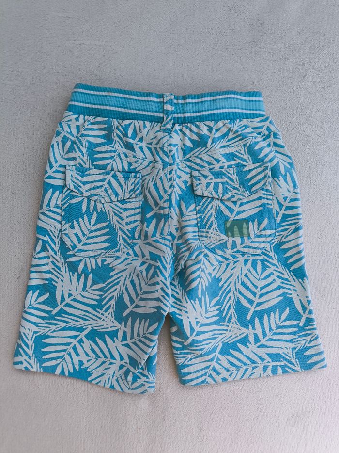 Short/Bermuda Marque Sergent Major Taille 4 ans, 104 cm • Coloris bleu, blanc écru • Imprimés feuilles • Taille élastique ajustable et avec cordons • 4 poches • Coton fin Peu porté, en très bon état #evelyne_garcons_4ans #evelyne_garcons