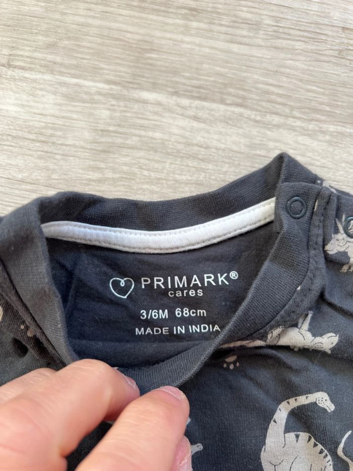 Lot de 2 t-shirt manches courtes imprimés dinosaures 🦕 🦖 neufs composé : - 1 t-shirt noir marque Primark 3/6mois - 68cm neuf - 1 t-shirt blanc vert marque Tex Baby 6mois neuf Attache par deux boutons pressions au niveau du col 100% coton N’hésitez pas à aller jeter un œil dans mon dressing afin d’obtenir des réductions supplémentaires 👍