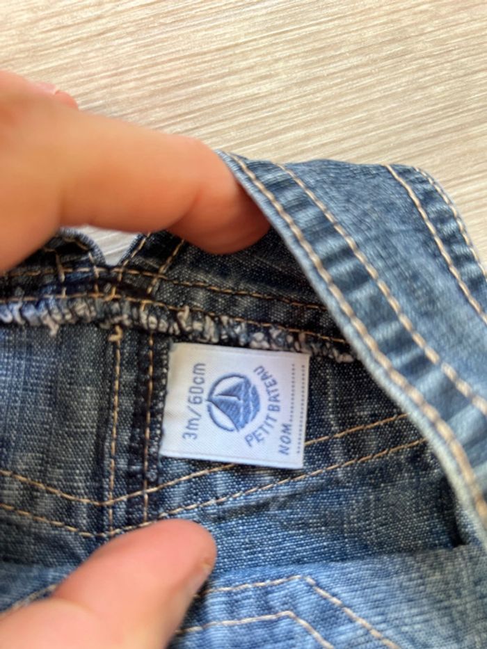 Salopette en jean neuve Petit Bateau 100% coton Marque : Petit Bateau Taille : 3mois - 60cm N’hésitez pas à aller jeter un œil dans mon dressing afin d’obtenir des réductions supplémentaires 👍