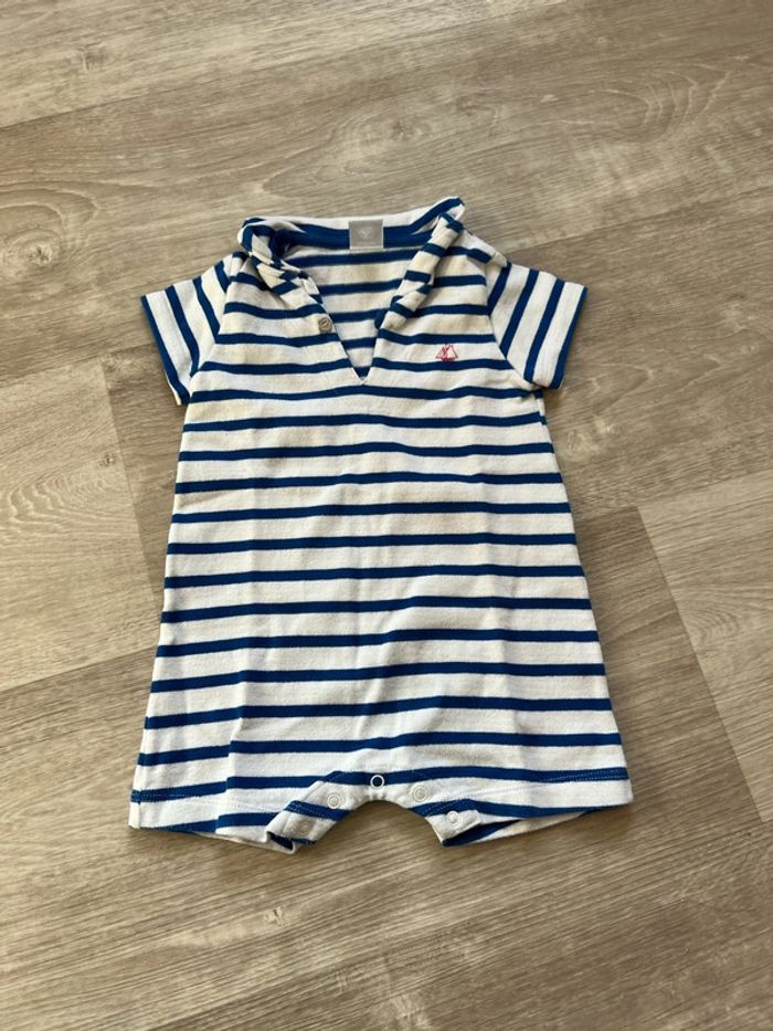 Combi-short barboteuse marinière Petit Bateau neuf 6mois - photo numéro 1