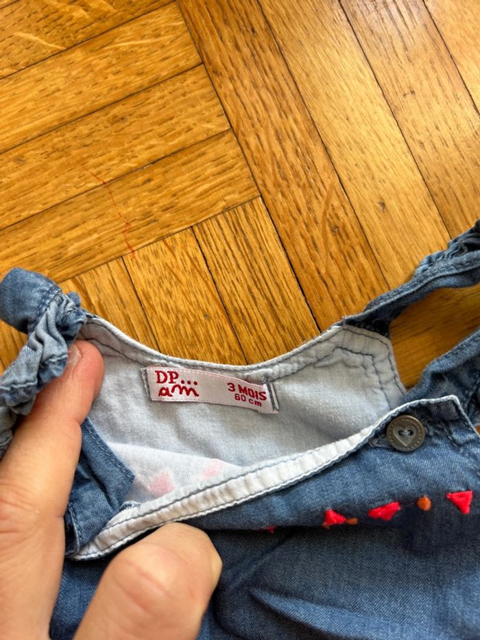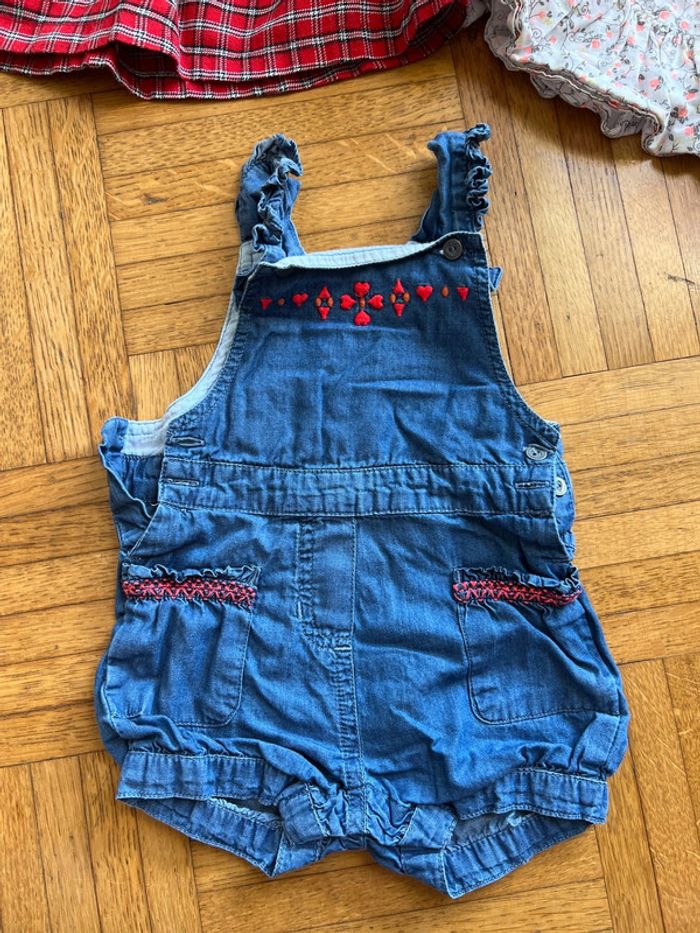 Lot de 2 robes et 1 combi-short neuf - 1 combi-short à bretelles réglable par boutons Broderies cœur 💓 Marque : DPAM Taille : 3mois - 60cm - 1 robe imprimé 🌸 Marque : Orchestra Taille : 3mois - 60 cm - 1 robe imprimé écossais Marque : Fruit de ma passion Taille : 3mois