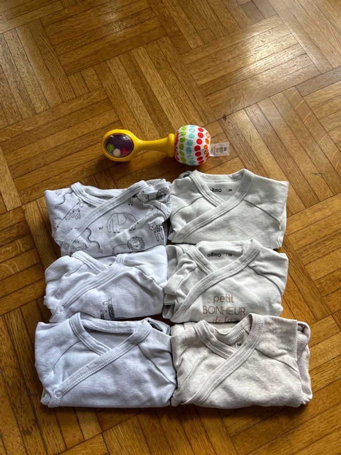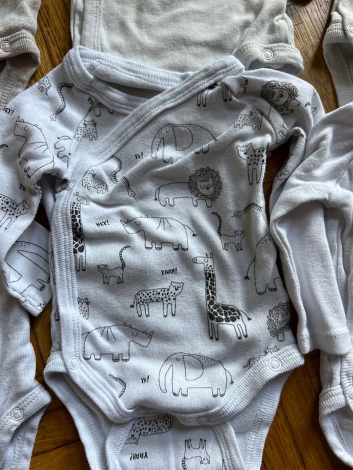 Lot de 6 bodies neuf Imprimé animaux de la savane 🦁 🦒 et imprimé ⭐️ Fermeture intégrale kimono Marque : Gémo Taille : 3mois - 60cm 100% coton
