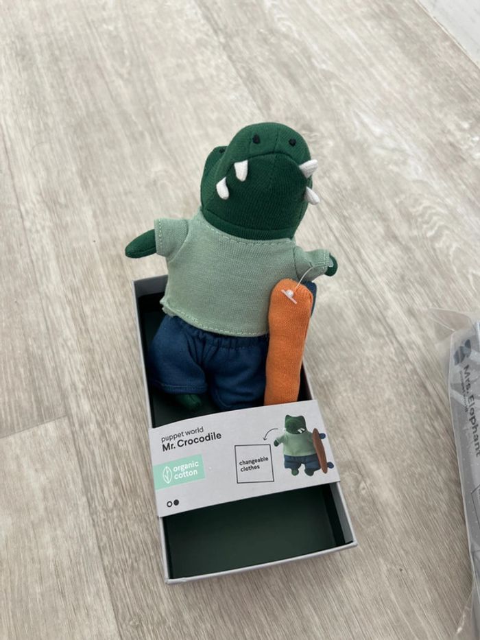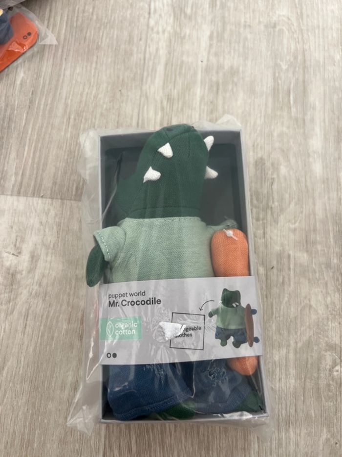 Marionnette / peluche d'activités Puppet World Ici 👈 Mr. Crocodile 🐊 Neuf vendue avec son emballage d’origine Différents animaux aux choix de disponible voir sur mon dressing : éléphant 🐘 / singe 🐒 / crocodile 🐊 et souris 🐁. Idéal pour l’éveil des enfants à partir de 18mois Idéal pour des activités en classe de maternelle • marque Trixie • 100% coton bio • acheté 24.99 euros l'unité N’hésitez à me proposer un lot si vous souhaitez en prendre plusieurs.