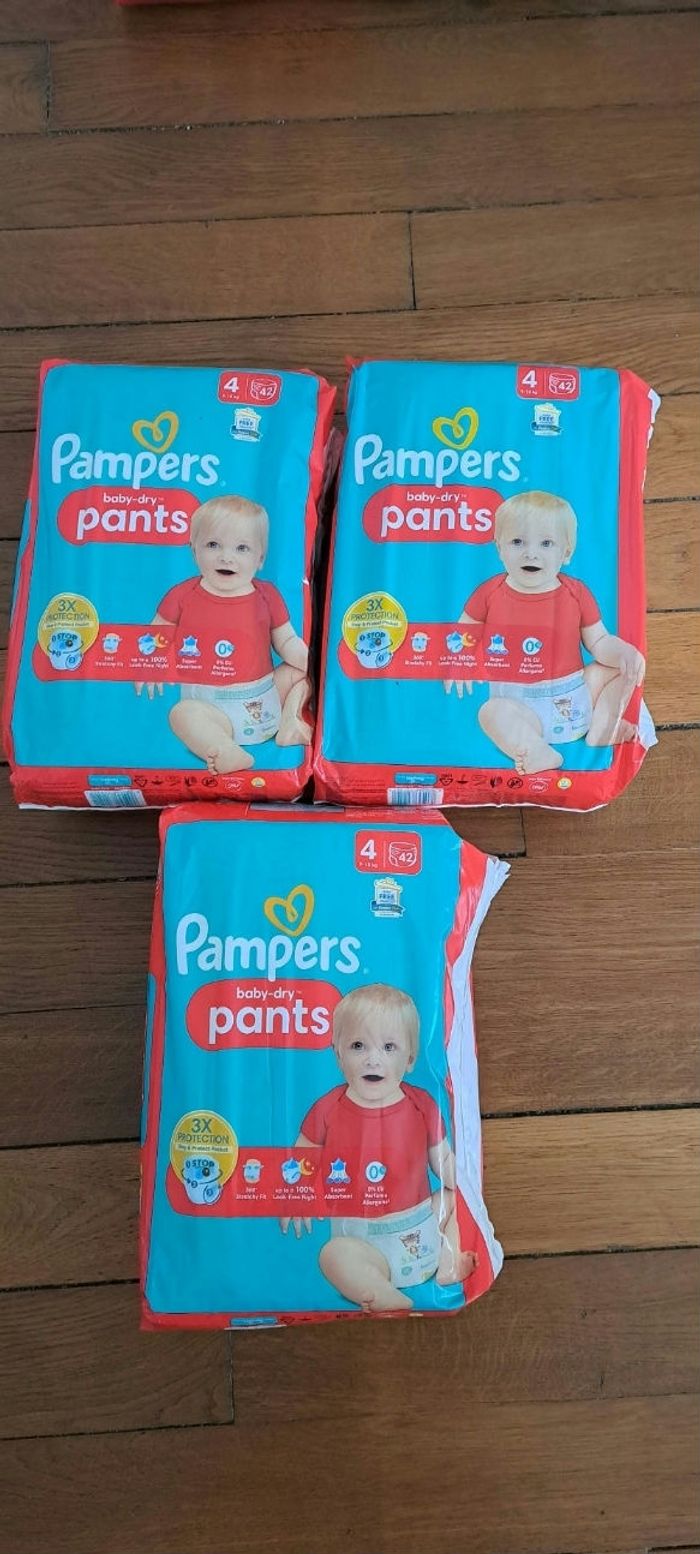 Lot de 3 paquets de coucges pants taille 4. Au total il y a 126 couches