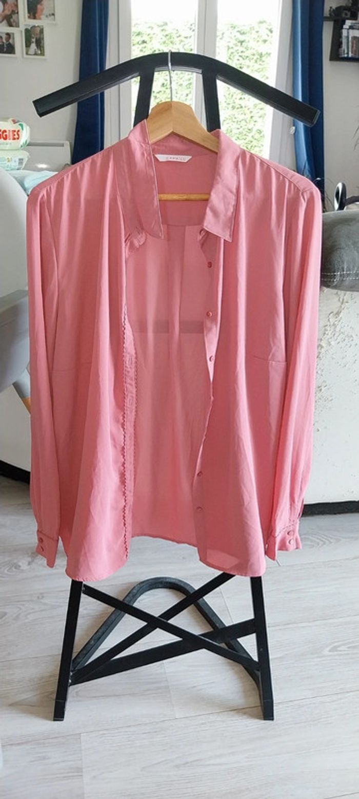 Chemise fluide Camaïeu vieux rose. Neuve jamais portée. Taille 46. Étiquette coupée. 55.5cm d'aisselle à aisselle.