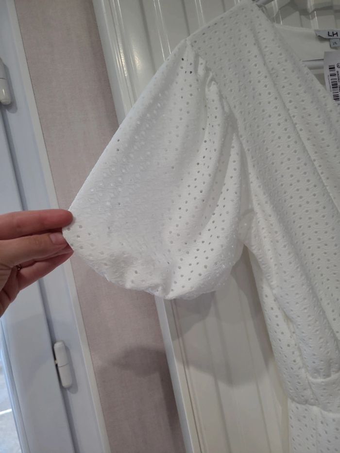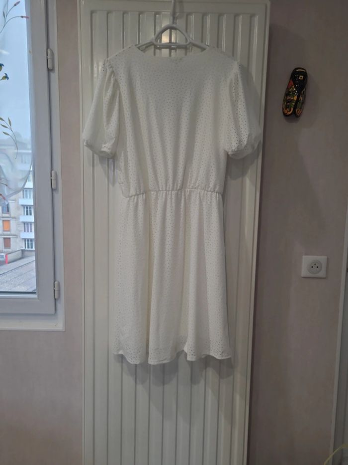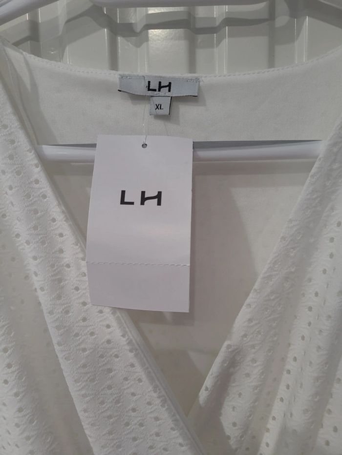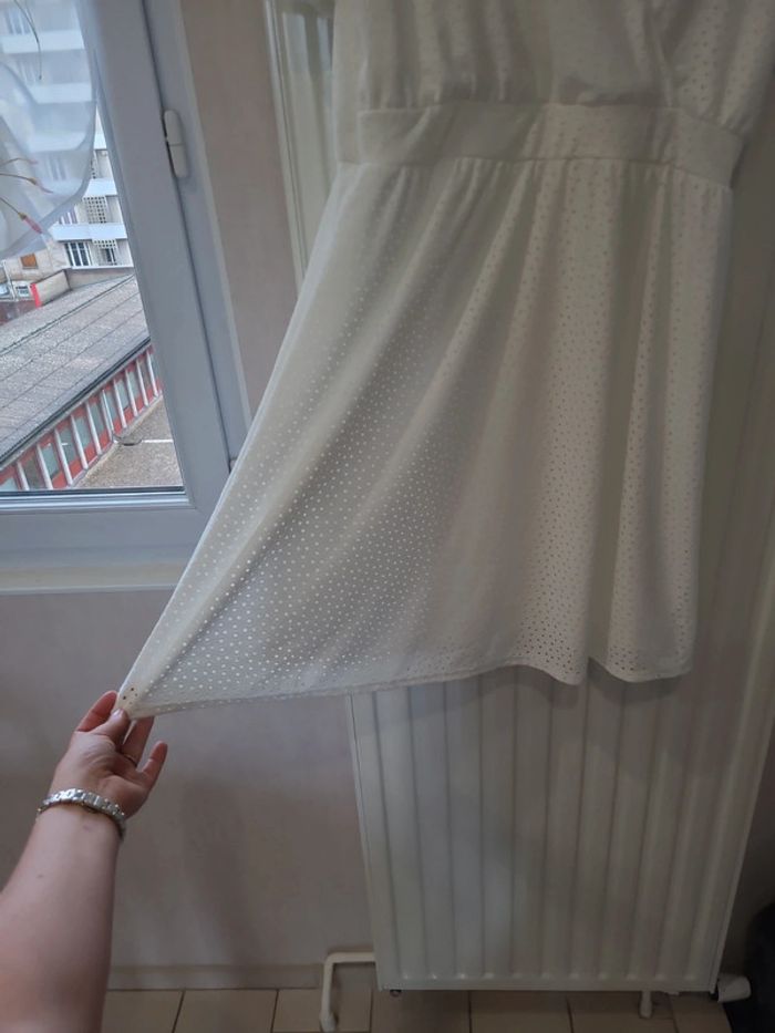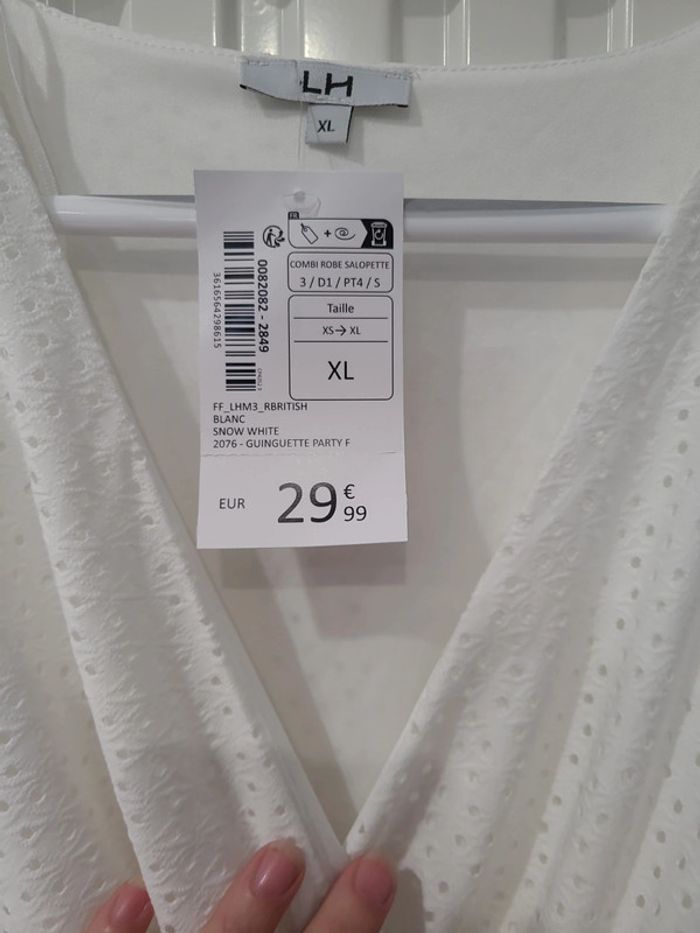 Robe blanche, marque LH La Halle taille XL neuve. Prix magasin 29.99 euros Dimensions à plat Taille 42 cm Epaule 44 cm Hauteur 97 cm Envoi rapide et soigné. Caisse P3