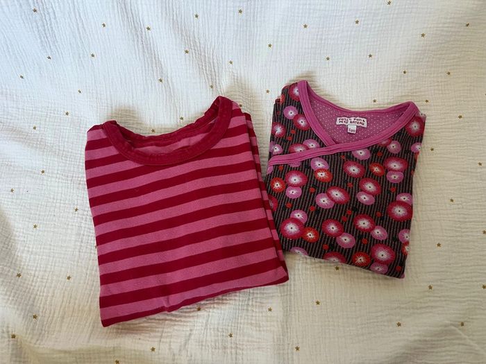 Lot de deux tee shirts 1 rayure 1 motifs Petit Pan forme cache cœur Taille 8 ans 100% coton Très bon état #lotteeshirts #lot8ans #lotpetitbateau #petitpan #petitbateaupetitpan