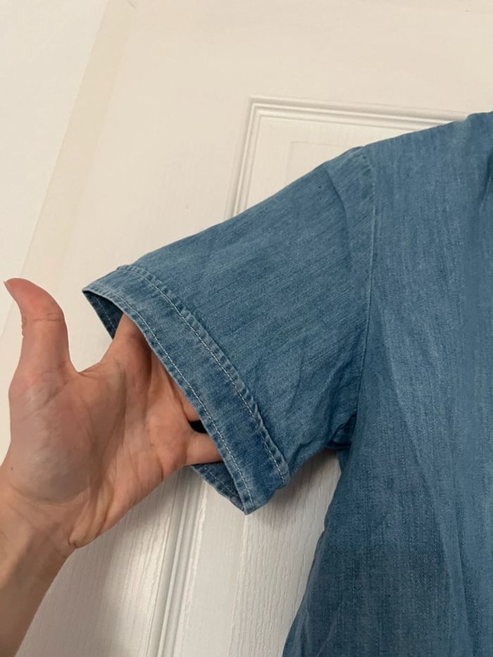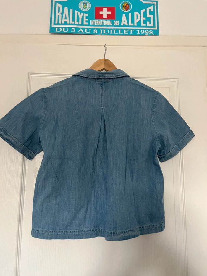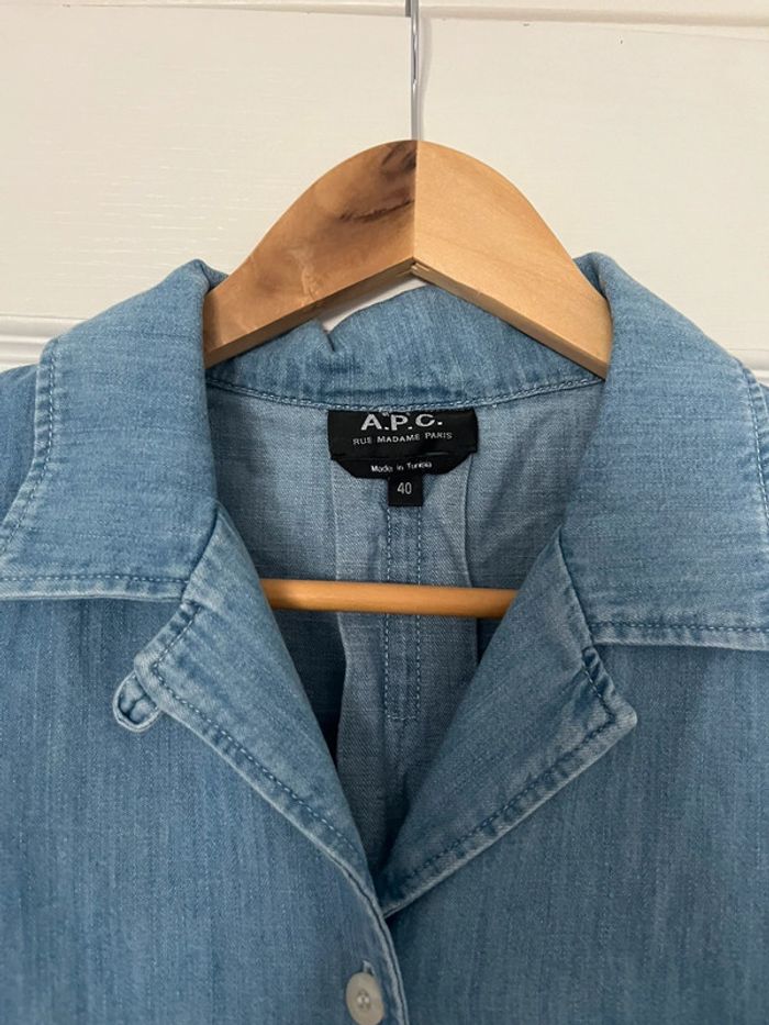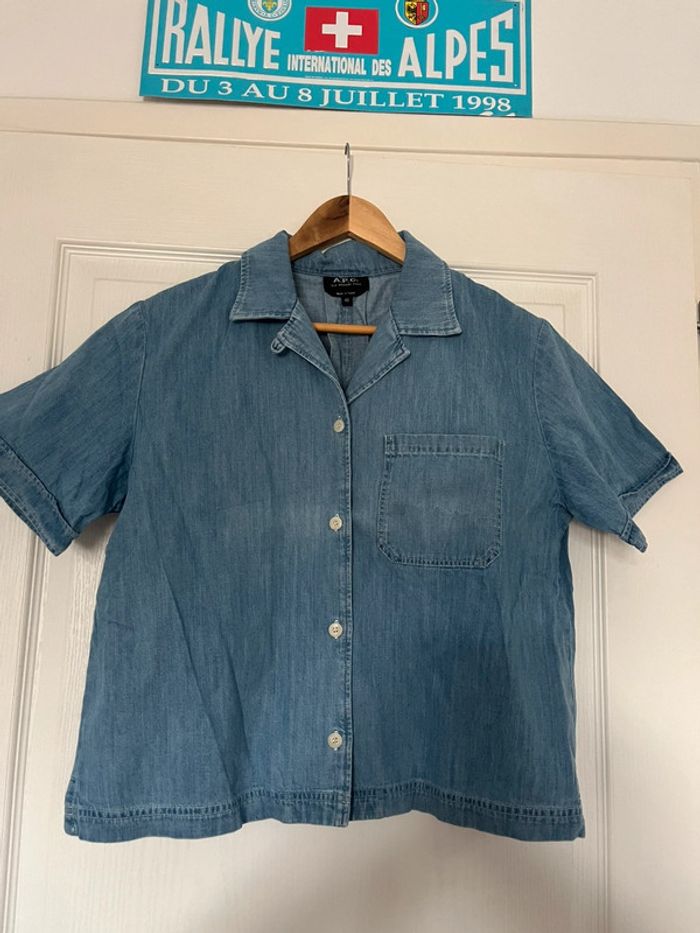 Chemise en jean Très jolie coupe Manches courtes Effet vintage APC taille 40 52 cm aisselle à aisselle 55 cm hauteur totale 100% coton #apc #apc40 #chemisejeanapc #chemisejean #chemisejean40 #jean #jeanvintage #effetvintage