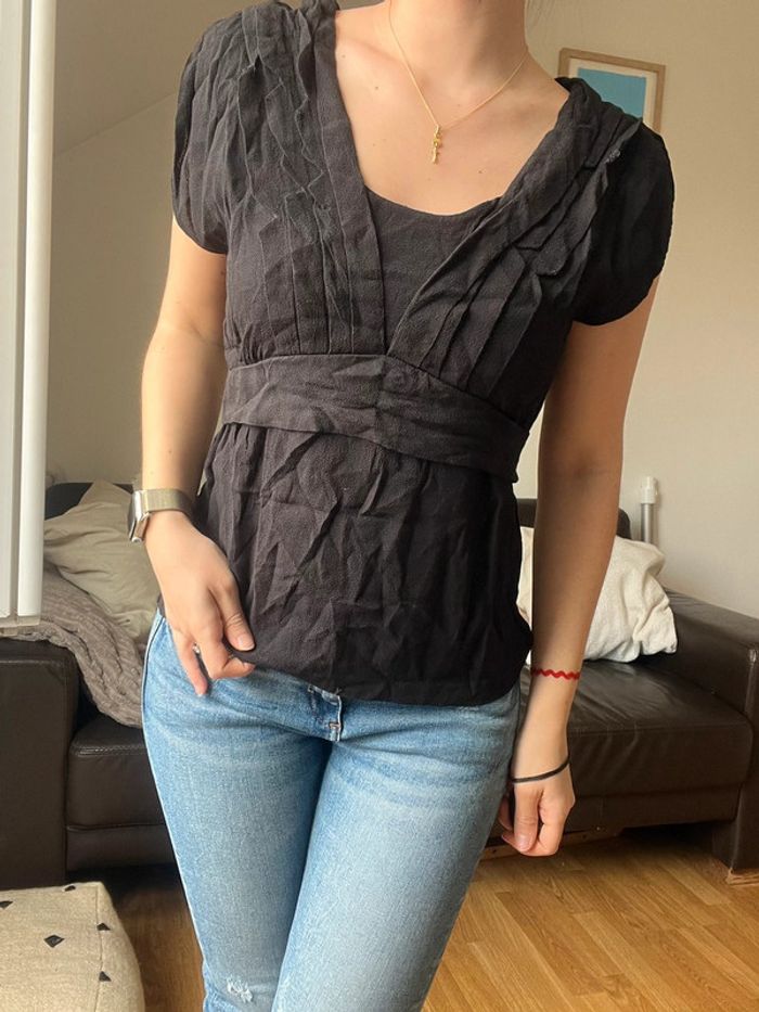 Top noir habillé à nouer Très chic pour aller travailler ou en soirée Comptoir des cotonniers mais j’ai coupé les étiquettes Taille 38 Très bon état #cdc #cdc38 #comptoirdescotonniers #comptoirdescotonniers38 #hautnoir #topnoir
