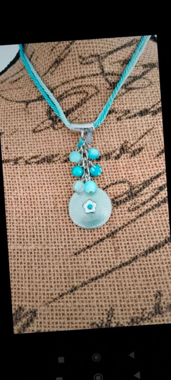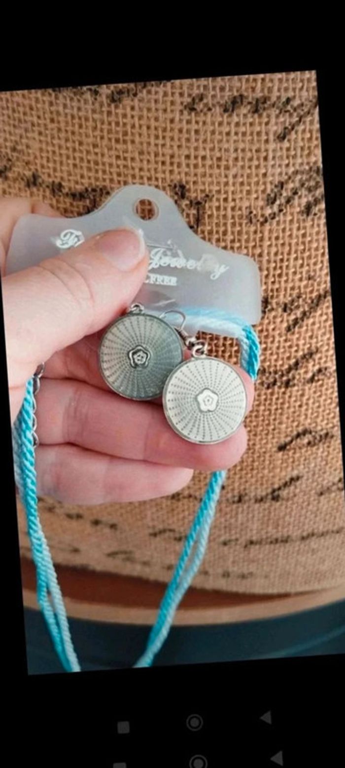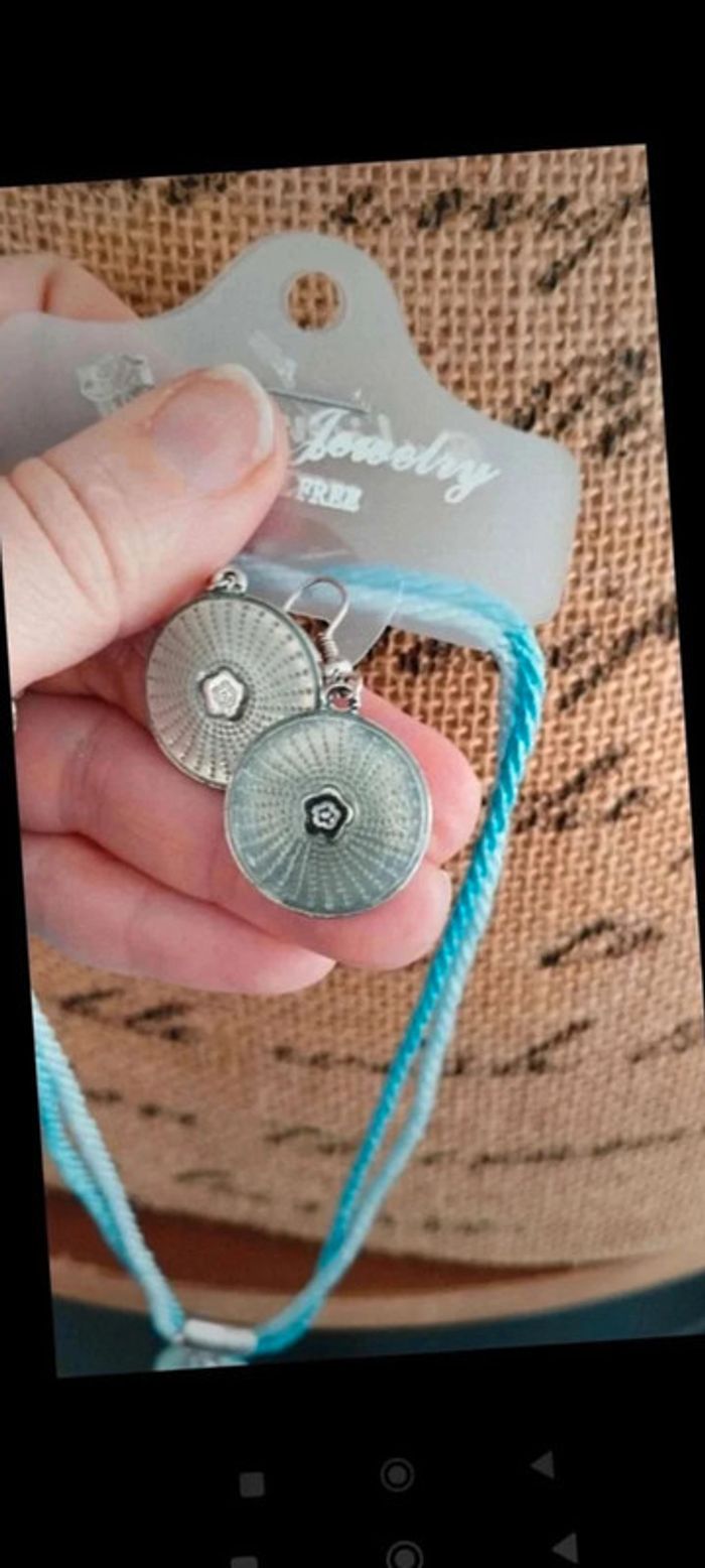 Parure collier boucles d'oreilles cordons bleu - photo numéro 5