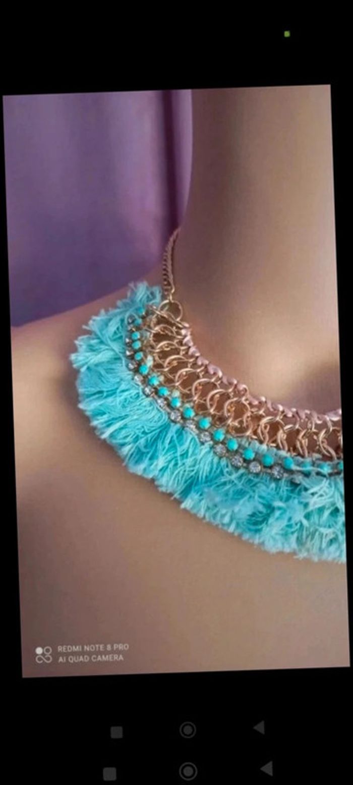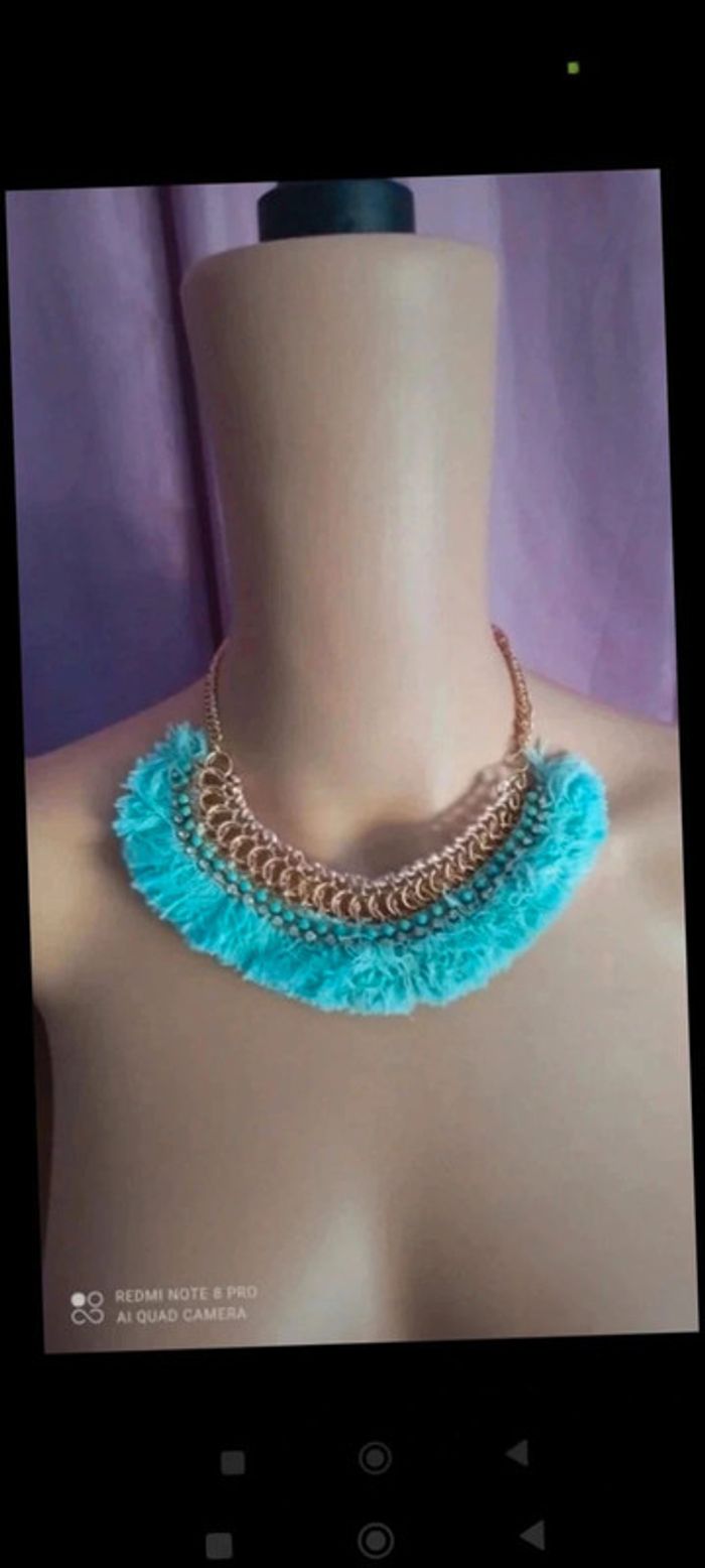 Collier frange bleu doré Femme fantaisie - photo numéro 2