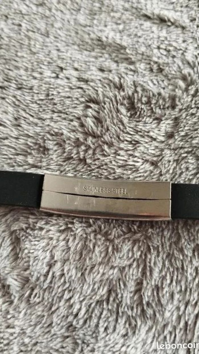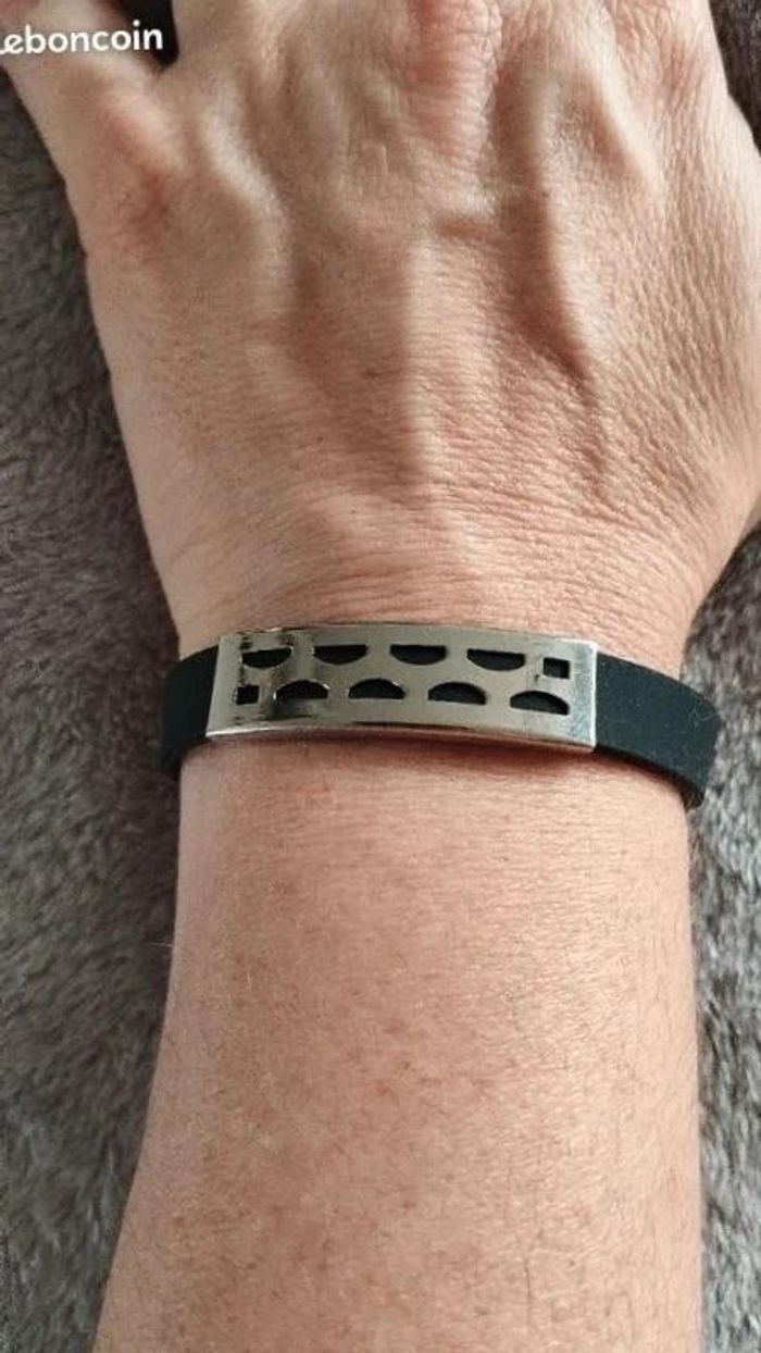 Bracelet Noir en Silicone avec Plaque Argentée Acier et Motifs Unique - photo numéro 5