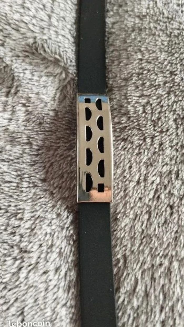 Bracelet Noir en Silicone avec Plaque Argentée Acier et Motifs Unique - photo numéro 1